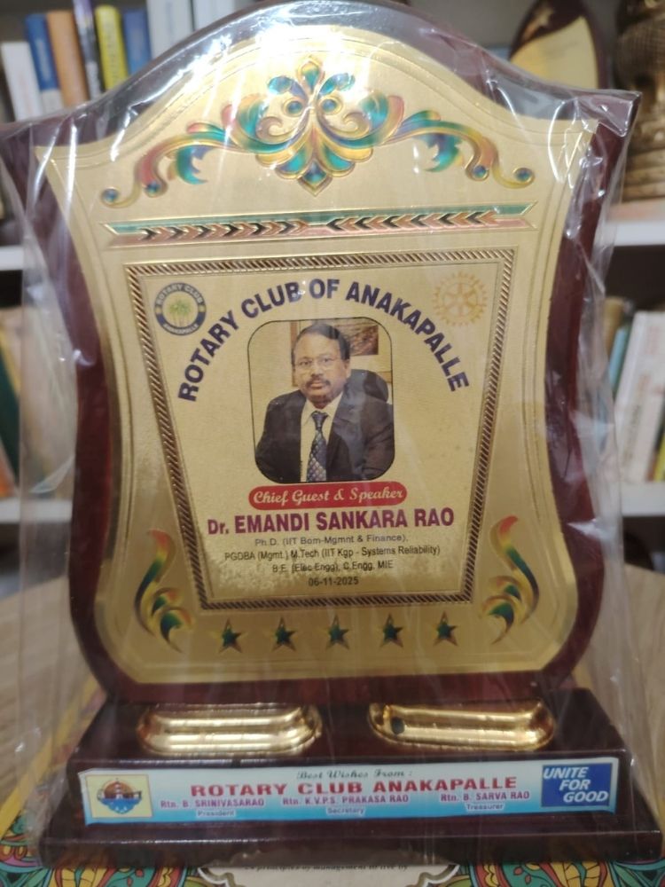 Dr. Emandi Sankara Rao (Dr. ESR) In B.E he had designed and developed an innovative project in those days on 2716 EPROM programmer using the 8080 microprocessor and 8255 PIA along with his Electronics & Communications Engineering teammates in the ECE Department instead of his parent Electrical Department Branch. With the introduction of GATE in 1983 and after passing the first GATE exam went for a post-graduation in M.Tech Reliability Engineering, a new specialization offered at IIT Kharagpur, and had done a project in DRDO-NSTL on Torpedos recorder systems reliability and maintainability in 1984. After passing from IIT Kharagpur, served for 10 years in Telecom Systems and Power Systems manufacturing sectors and then again went to academics with a passion for research and joined IIT Bombay and had done Doctoral degree Ph.D on Telecom Infrastructure Services Project Finance & Technology titled " Techno-Economic Framework For Sensitivity & Risk Analysis Towards Network Effectiveness " using the Stochastic and AI-ANN simulation models on International Digital Telecom Services Networks having a innovative technological combination of PCM TDM Class 5 Switching Systems and transmission through evoloving IP Networks and linking the networks through Satellite C-Band transponders due to shortage of Optical Fibre in 2002. While persuing Ph.D he has also done PGDBA from Pondicherry Central University in year 2002 when serving in IDBI & IDFC.